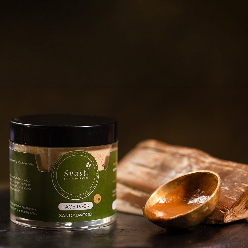 “Svasti Sandalwood face pack is my go-to pack & exfoliant. Even though it’s a face pack, if I’m pressed for time, I quite often use it as a scrub given how gentle it is on the skin. It has the goodness of lentils, a hint of orange and the fragrance of sandalwood. All in all… Love it!”