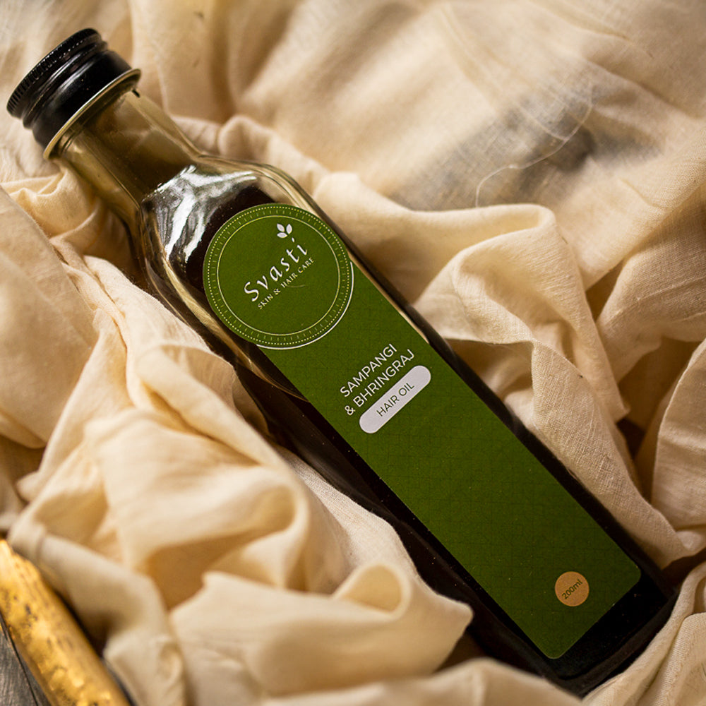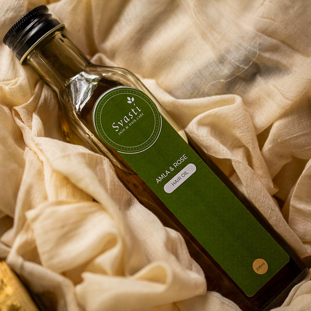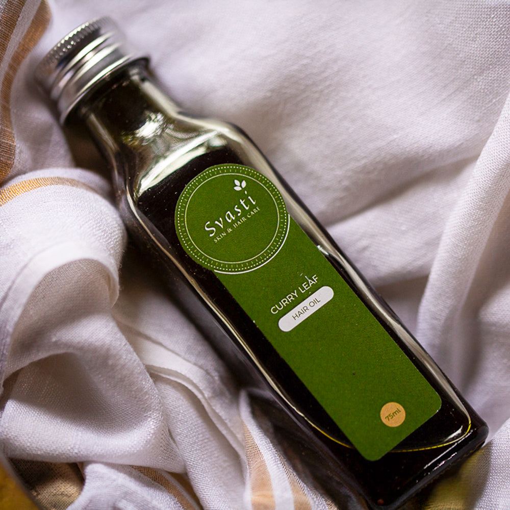 “I absolutely loved the Curry Leaf Oil. My hair is usually dry, dull coupled with dandruff and hair fall and lots of greys. I used the oil twice a week and kept it for an hour. It’s quite visible that my hair is stronger, the scalp less itchy and the growth of greys has reduced. Definitely keeping on using Svasti!”